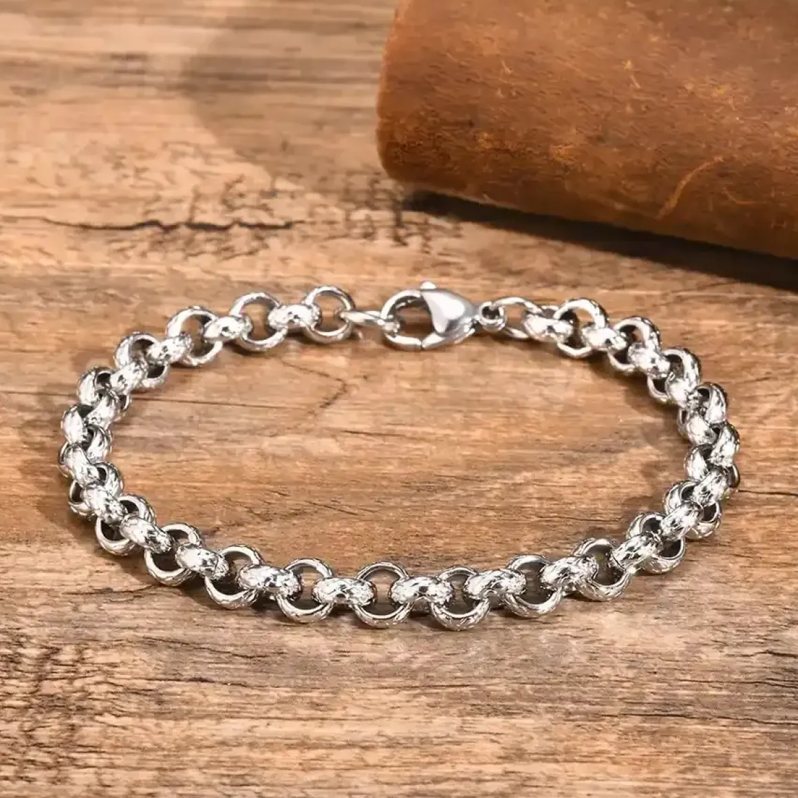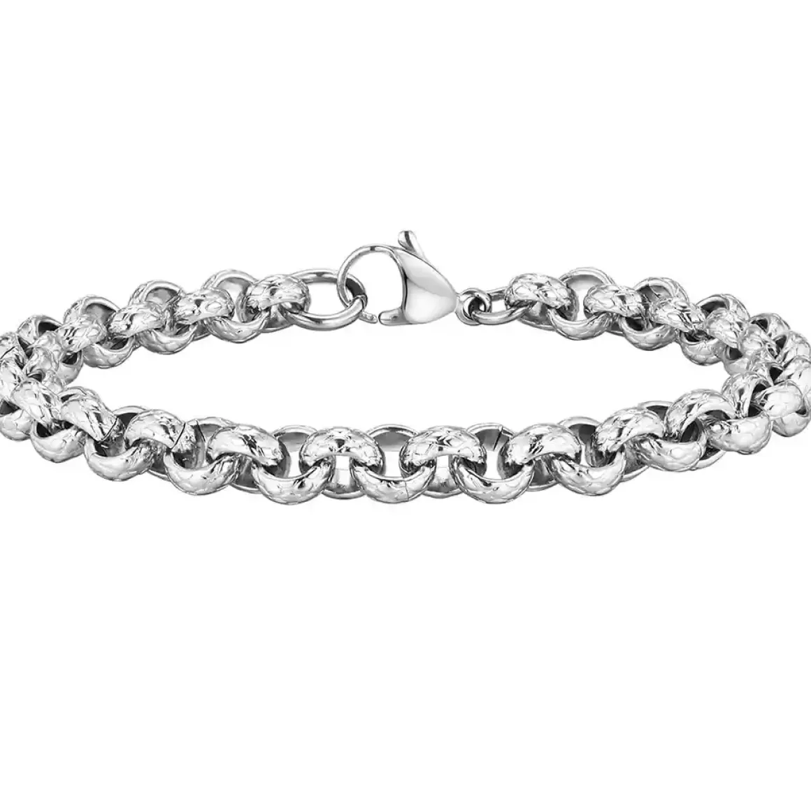 Simpelt stålarmbånd med runde led.
