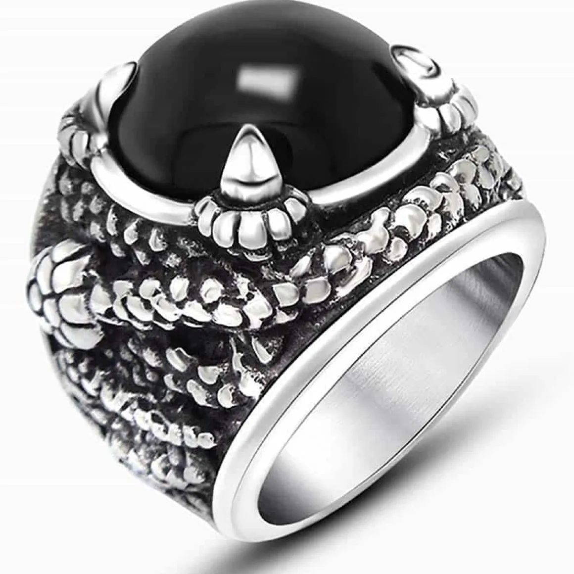 Herrering med stor sort agat sten.