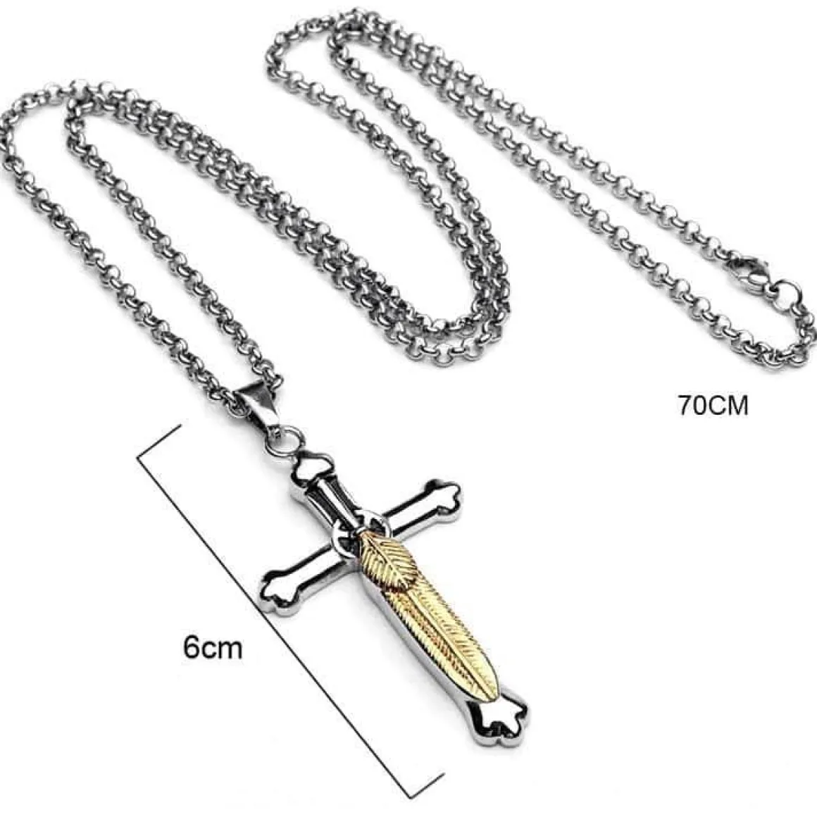 Korset er 6cm langt og kæden er 70cm