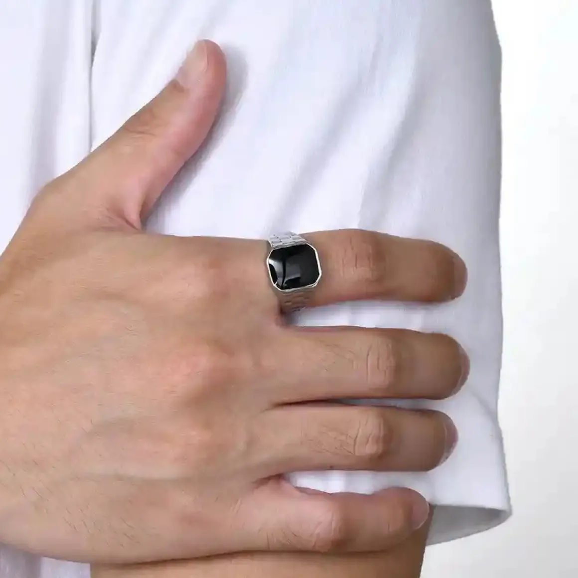 Den sorte sten på 13 x 13 mm tilføjer et strejf af mystik.