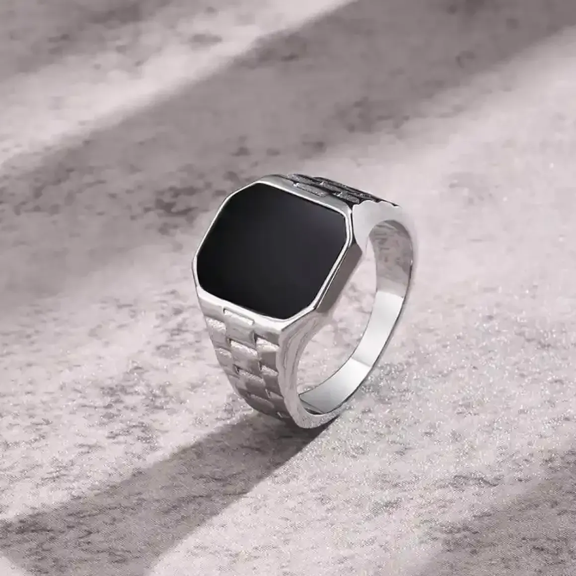 Elegance fra en svunden tid med ‘Stålring med sort sten’.
