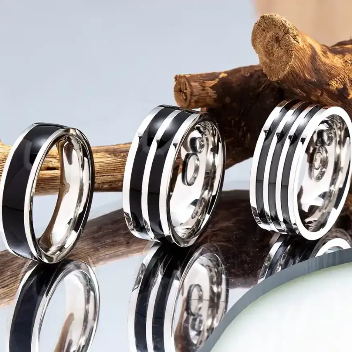 3 ringe med god stil i rustfri stål sælges samlet.