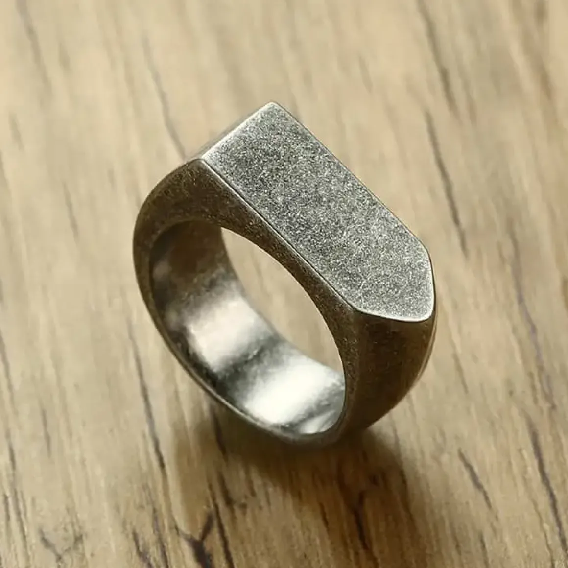 Nyeste og flotteste trend for herrering er denne fashionring i oxyderet bruch rustfri stål.