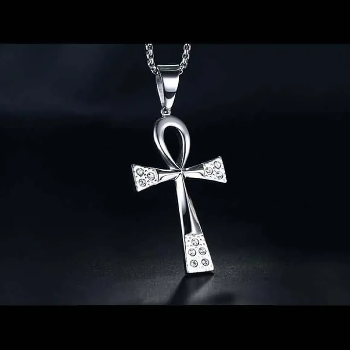 Kors på 3,5 x 6 cm i blankpolleret rustfri stål og med CZ sten.