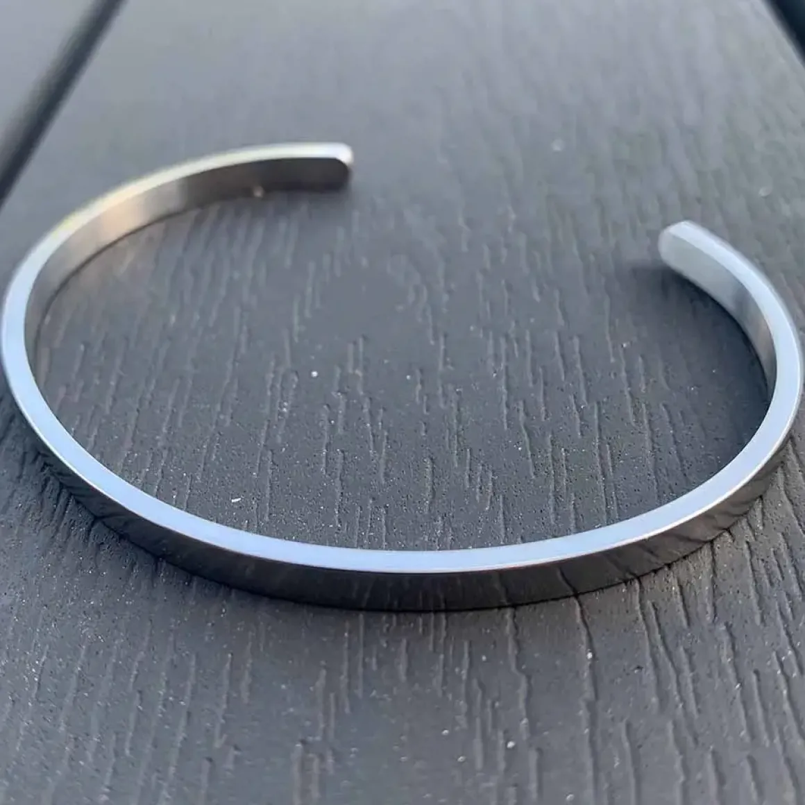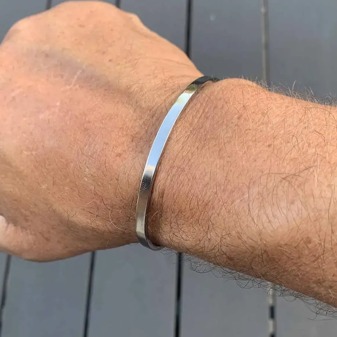 Simpelt tyndt 4mm bred og i højpolleret rustfri ædelstål.