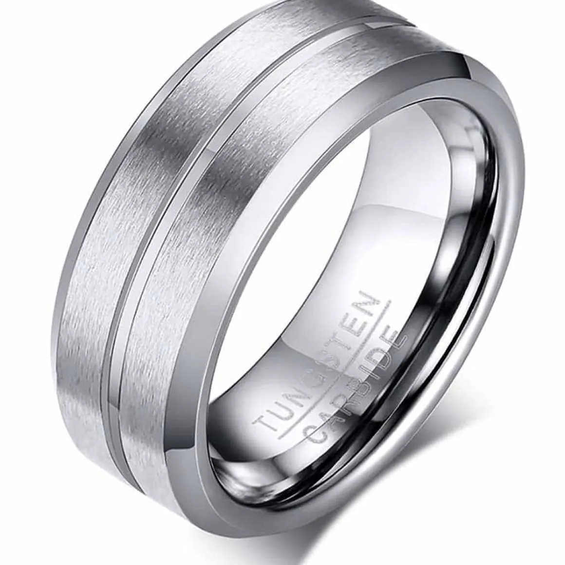 Flot tungstenring med rille og mat overflade.