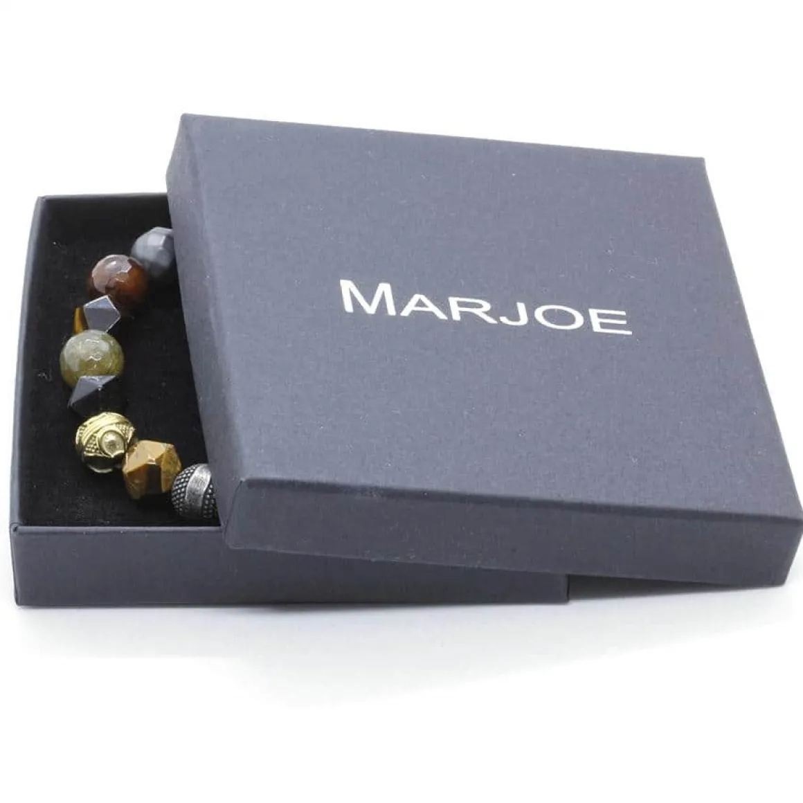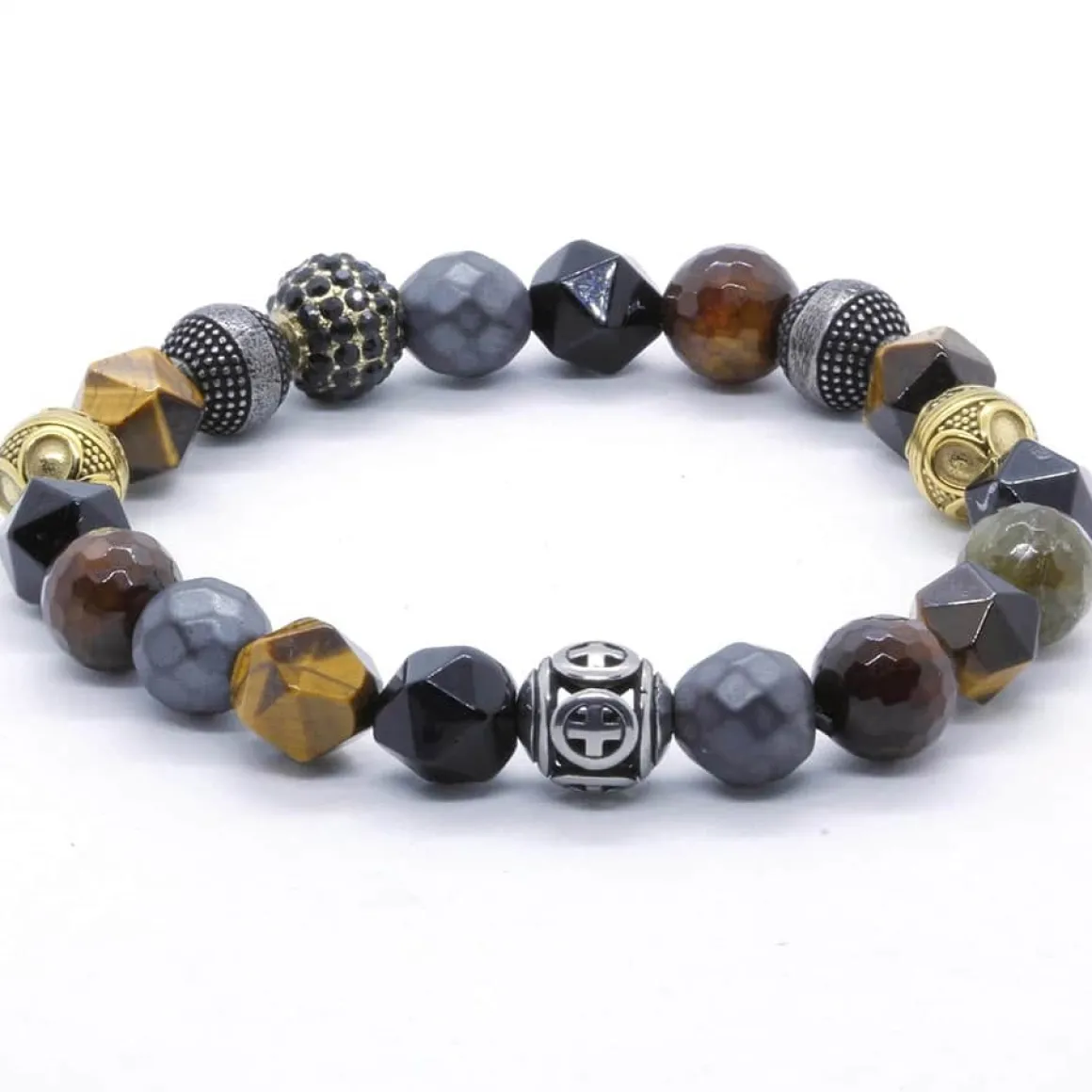 Jasper, Hamatit, Tigereye, forgyldt ædelstål og CZ sten perle med sort CZ sten.